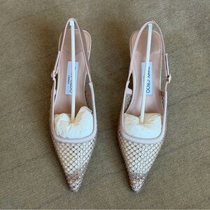 Jimmy Choo Amel 50 mesh pumps in macaron/crystal, size 37, NEW