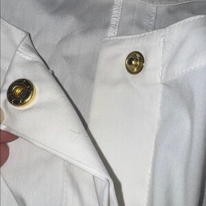 Chic White DKNY Short-Sleeve Top with Sheer Grid Accents - Size M