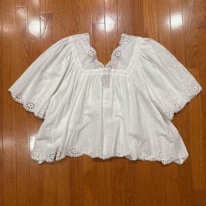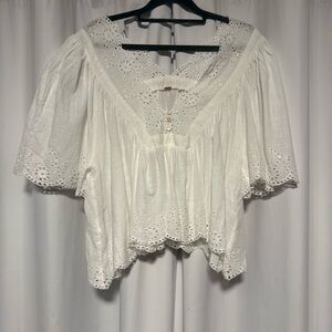 Free People Costa Eyelet Top Womens Small White Embroidered Cottagecore Blouse
