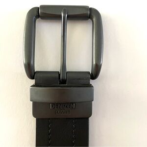 ‘This Reversible Denizen Belt from Levi's combines both fashion and function. The soft leather material is practical with an edgy feel. The reversible construction with rotating buckle allows you to easily reverse from one side to another. Pull up buckle at the hinge and twist to rotate it and put it back in place to wear your belt in brown or black.’
