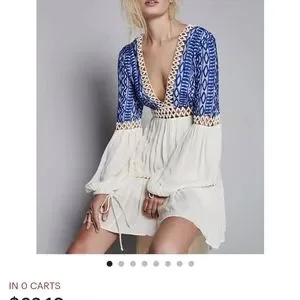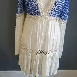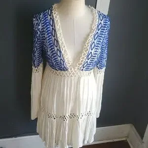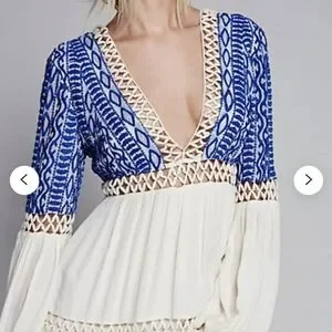 Free People Blue and Cream Mini Dress
