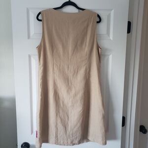 Sweet Miss XL Tan Linen Cotton Dress Pink Sequin Sleeveless Midi Dress Shift #3
