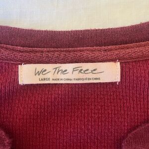 We The Free Burgundy Long Sleeve Top with Patterned Sleeves