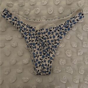 Monday Swimwear White and Blue Paper Floral Byron Bikini Bottom