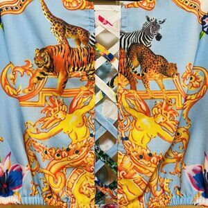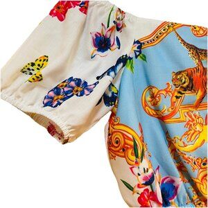 L'ATISTE BY AMY Baroque and Animal Print Off-the-Shoulder Cropped Top Sz S
