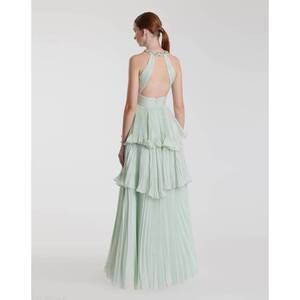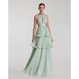 NEW MAC DUGGAL high neck chiffon tiered gown with cut out in green