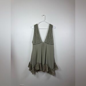 Free People Freya Mini Dress w/ Pockets & Lace Accents - Pale Green Small