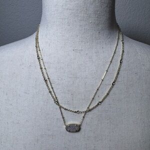 Chic layered necklace by Kendra Scott. Features gold chains with silver accents. Perfect for elevating any look.