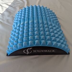 The Solidback back stretcher is a drug-free, foam device designed to relieve lower back pain, sciatica, stiffness, and poor posture by providing gentle spinal decompression and alignment, featuring an arc shape with a central contour and spiky nodes for massage, supporting over 300 lbs, and used for short daily sessions for relief. It's a popular alternative to surgery or medications, aiming to improve spinal health through chiropractic-style stretches. Heavy duty EVA foam.