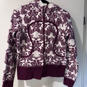 Lululemon scuba Scuba hoodie in herringbone beep Burgundy and soft white cream.