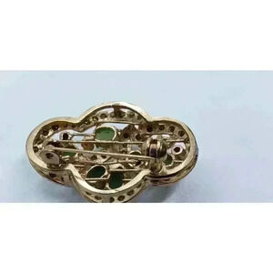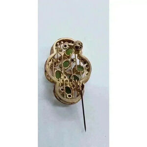 Vintage Brooch Jade 10k Gold Filled Rhinestone Accents art deco Flower Leaves