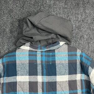 Vintage 90s Y2K OP Shacket Mens L Flannel Plaid Hoodie Quilted Blue Gray Skiwear