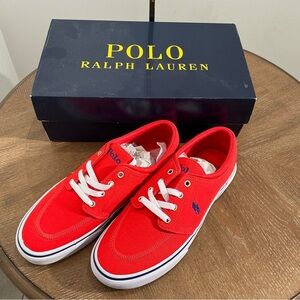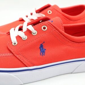 The Polo Ralph Lauren Faxon X Low-Top Canvas Sneaker features a modernized silhouette and stitching at the vamp inspired by classic boat shoes