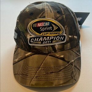 Celebrate the 2011 NASCAR Sprint Cup with this camo hat. Features bold championship embroidery and iconic NASCAR branding.