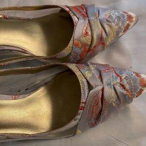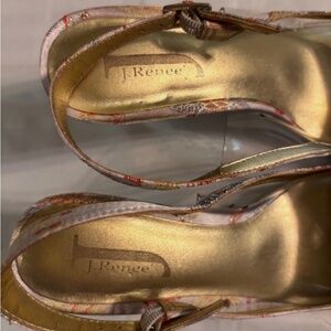 J. Renee Slingback Sandals Floral Patterns 8M Beige Pointed Toe