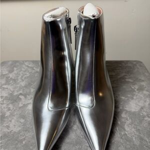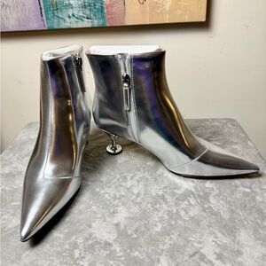 Brand New Kate Spade Garnish Zip Up Pump Booties Size 9 Step out in style with these chic silver ankle boots from Kate Spade. Perfect for adding a touch of elegance to any outfit. Approx 2.25 Sleek silhouette design