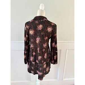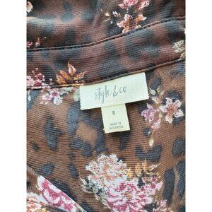 Style & Co Leopard Floral Long Sleeve Tunic Top Size S