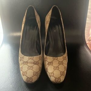 GUC Gucci Women's Beige Brown GG Marmot High Heel Size 6 1/2 B
