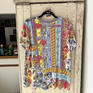 Johnny Was Multicolor Floral Patchwork Short Sleeve Tee