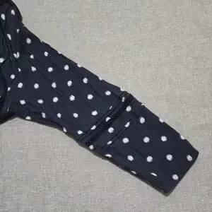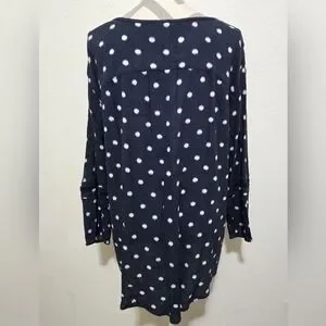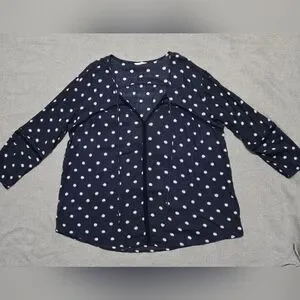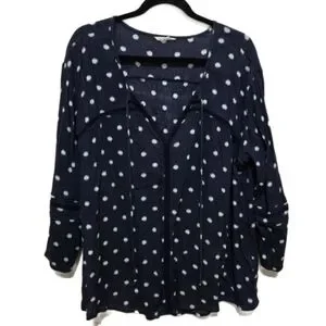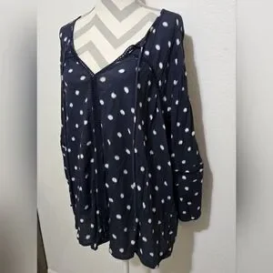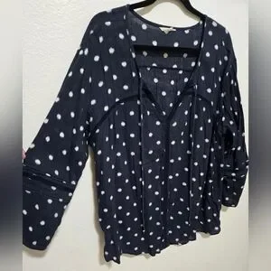 CASLON Blue Boho Blouse White Polka Dots Long Sleeves Size XL