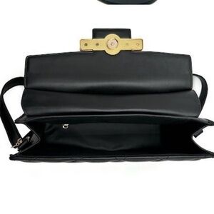 Chic black quilted design. Elegant gold accents. Perfect for any occasion.