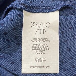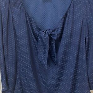 Elegant navy blouse by CAbi. Features a charming bow and subtle dotted pattern. 3/4 sleeves. Perfect for work or any occasion. Soft and buttery. Excellent condition
