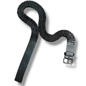 Continuous stud detailing crafted on beautiful slatted Italian cowhide genuine leather for an edgy urban vibe. Perfect with jeans, it is finished with a subtle silver-tone rectangular buckle. A beautiful finishing piece for denim, or worn at the waist over your favourite styles and layers.