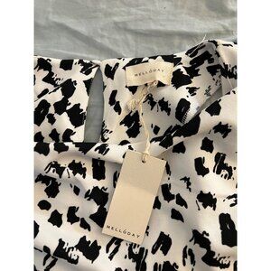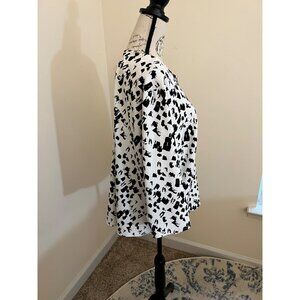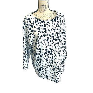 Melloday White And Black Pattern Long Sleeve Scoop Neck Blouse 2X