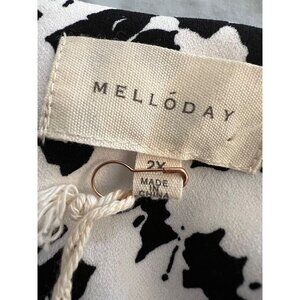 NEW Melloday Knit Blouse White Black Blouse Long Sleeve Shirt Top Stretchy 2X