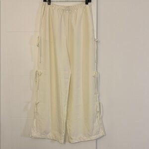 Chic wide leg pants with side tie details. Comfortable and stylish for any outing.