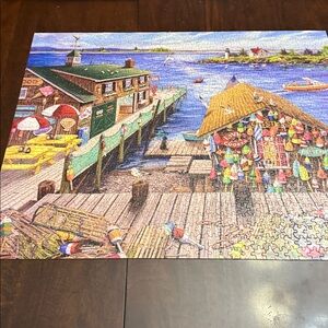 White Mountain Lobster Pound Puzzle. 1000 pieces. Complete. Has poster
