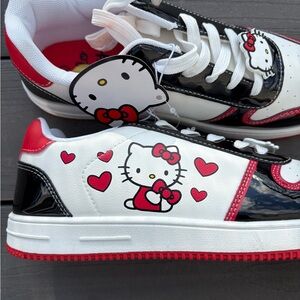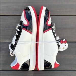 Sanrio Hello Kitty Hearts Prints White/Black/Red Court Sneakers Shoes 7, 8