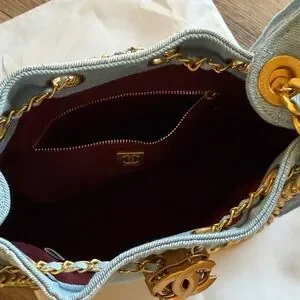 Chanel 25 Light Blue denim Jean Quilted Bag with Gold Chain look a like