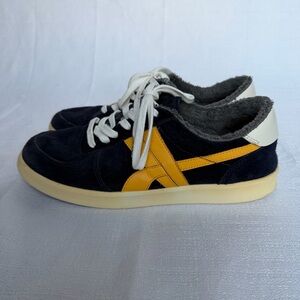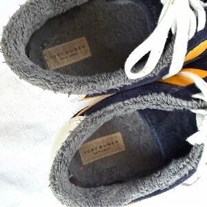 Tory Burch Womens Hank Court Sneaker Navy Suede Yellow Terry Lining Size 9