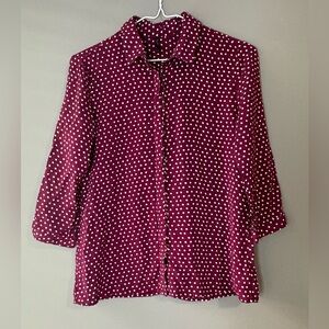 Polka Dot Burgundy Wine size M white polka dot button up 3/4 sleeve Blouse