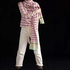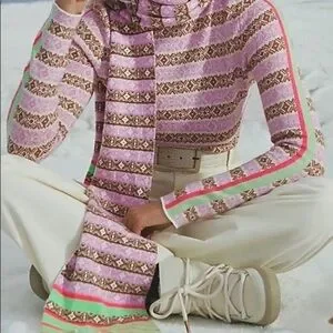 Anthropologie Maeve Pink Abstract Knit Scarf