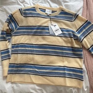 This is a fine-gauge recycled cashmere blend sweater knit - 95% Recycled Cashmere, 5% Cashmere. Hand wash + dry flat.