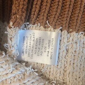 Long Sleeve , V Neckline, Shift Style, Midi Length, Colorblocked inShades of Cream, Pink, Gold, and Brown, Ribbed Sleeve Cuffs and Hemline, Size Large.