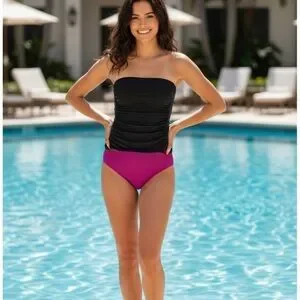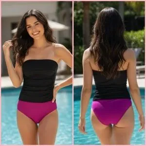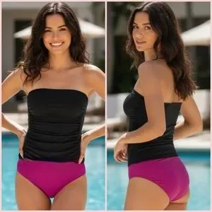 Lands end Bandeau tankini Strapless Black