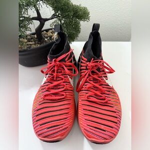 Nike free train Force Flyknit Athletic Shoes - Red, Black, and White
