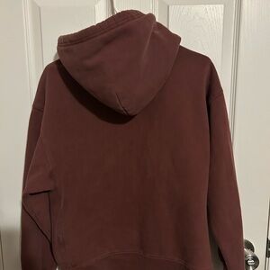 Soft and warm hoodie. Features a classic design. Ideal for everyday wear. In the colour burgundy. Has some normal wear but in overall good condition.