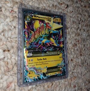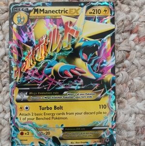 Mega Manectric EX card with vibrant artwork. Features Turbo Bolt attack. Perfect for collectors and players.