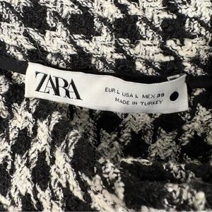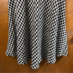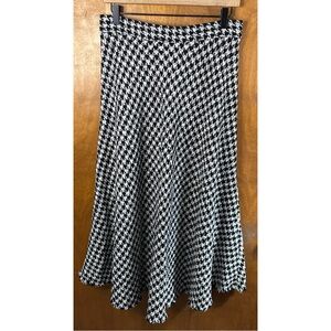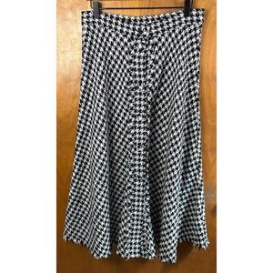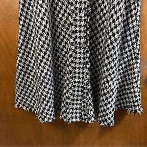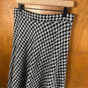 As seen on Kate Middleton and other celebrities. Gorgeous black & white houndstooth tweed button down midi skirt from Zara in a size large. It features a high rise, a button up front closure, a split hem, & an a-line flowy fit. In great preowned condition. A true blogger favorite.