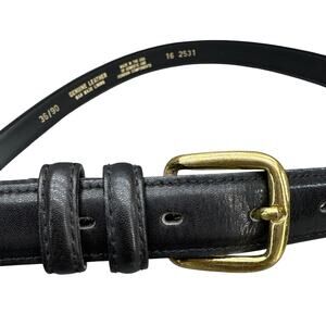 Elevate your style with this classic vintage black leather belt! Featuring a handsome brass buckle and a 1" width, this dress belt is the perfect accessory for men. Size 36".