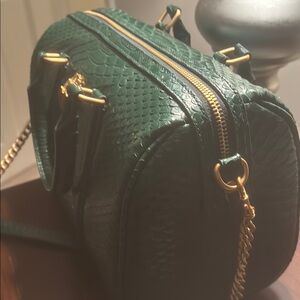 Elevate your style with this chic green crocodile-embossed handbag. Perfect for any occasion, this bag combines elegance with functionality.