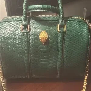 New Unused Kurt Geiger Green Crocodile-Embossed Handbag