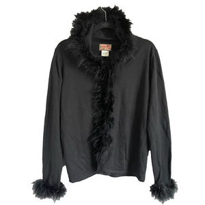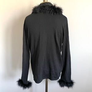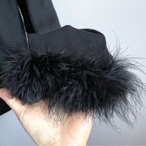 🛑 Vintage April Cornell Black Maribou Feather Trim Cardigan - S/M