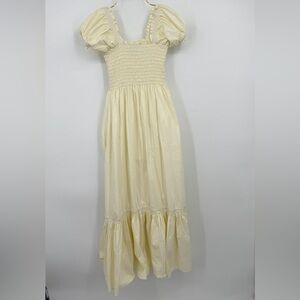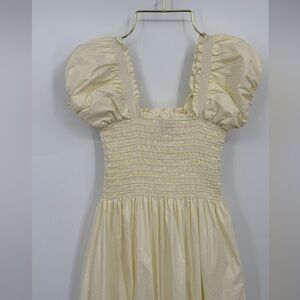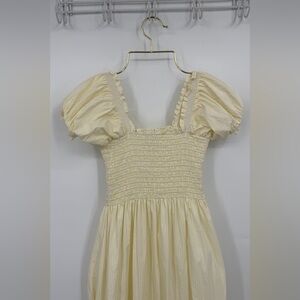 La Ligne Yellow Smocked Puff Sleeve Midi Dress – Size M
