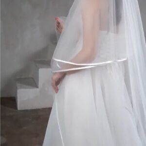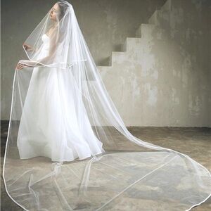 Satin Edge Cathedral Wedding Veil: Two Layer Bridal Ivory Veil 136/30 inches - royal cathedral