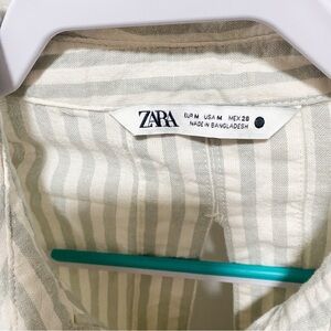 Stylish striped oversized button-up shirt. Features a classic collar and front pockets. Open back. Perfect for casual wear.